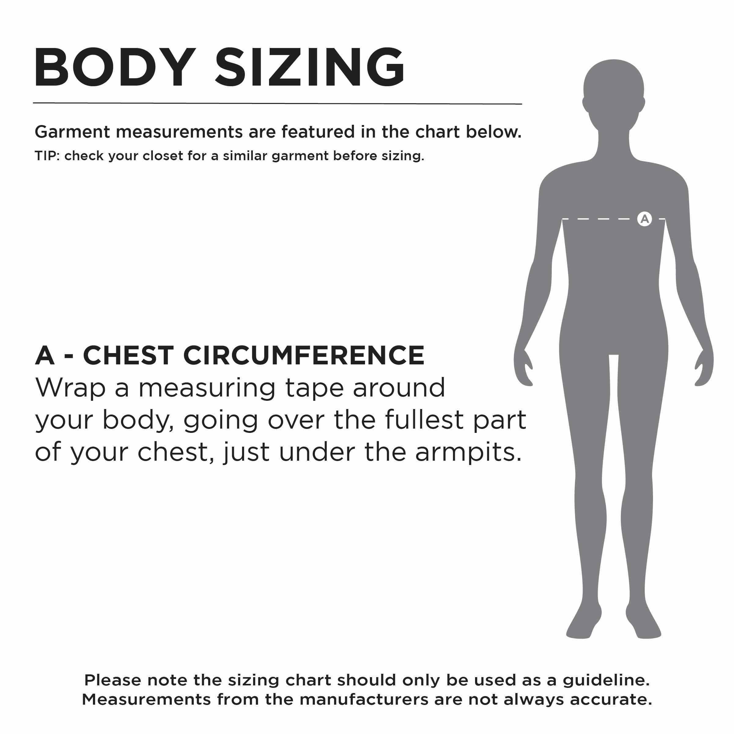| Chest | 34 - 37 | 37 - 41 | 41 - 44 | 44 - 48 | 48 - 52 | 52 - 56 |